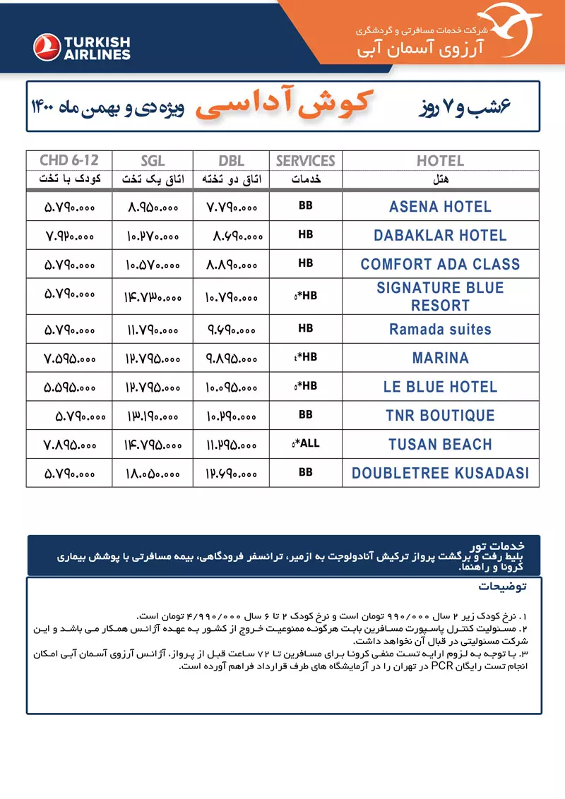 تور کوش آداسی | ویژه دی و بهمن ماه 1400 | پرواز ترکیش ایرلاین