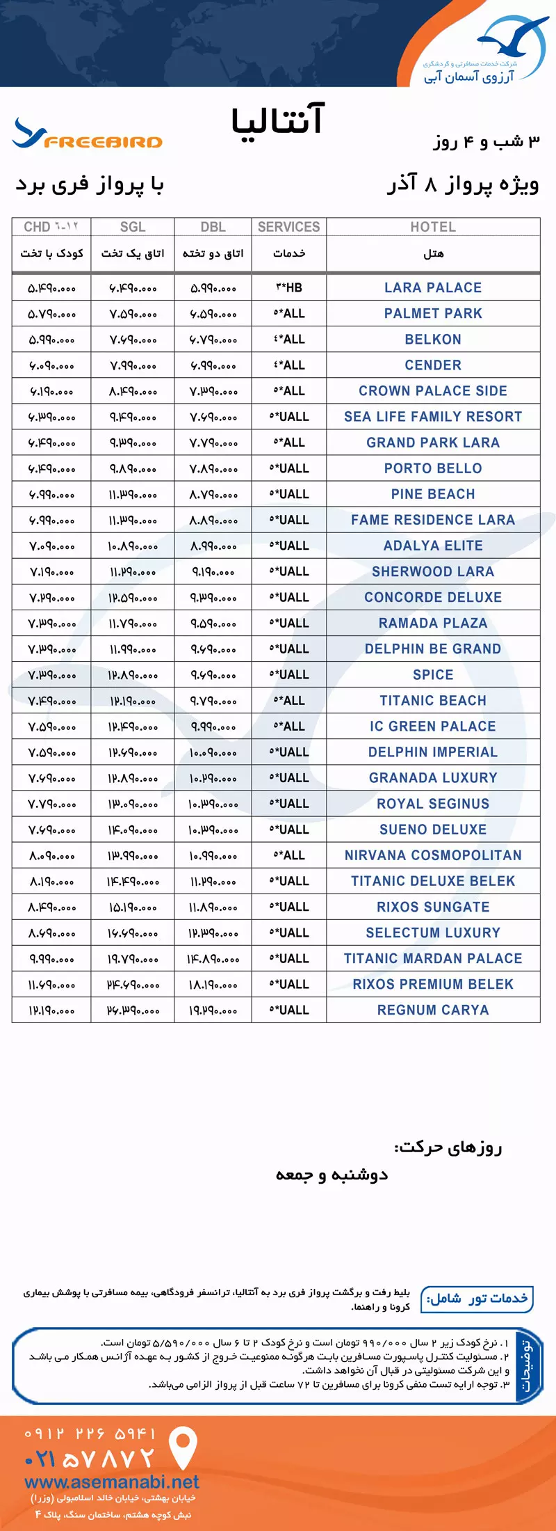 تور آنتالیا | 4 روز ویژه 8 آذر | پرواز فری برد