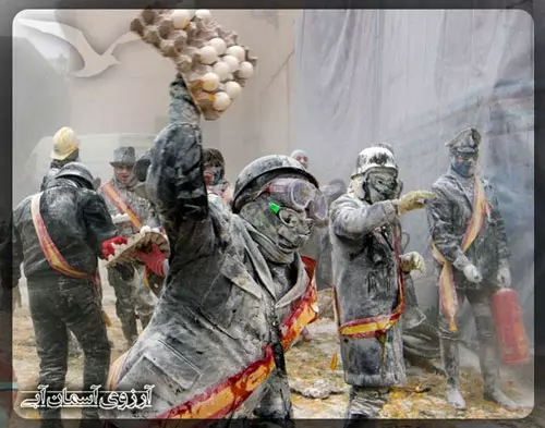 جشنواره آرد و تخم مرغ ریشه 200 ساله در اسپانیا که هر ساله در قسمت شرق این کشور برگزار می شود و از آیین قدیمی مردم است که به اسم قدیسی های بی گناه نیز مشهور است. گردشگران و مسافران زیادی برای تماشای این جشنواره می آیند و به گونه ای است که دو گروه از مجردین و متاهلین در این جشن شرکت می کنند و با هم درگیر می شوند که با آرد و تخم مرغ به هم حمله می کنند. و در طول این درگیری خیابان های شهر با آرد سفید پوش می شود و منظره زیبایی را ایجاد می کند .