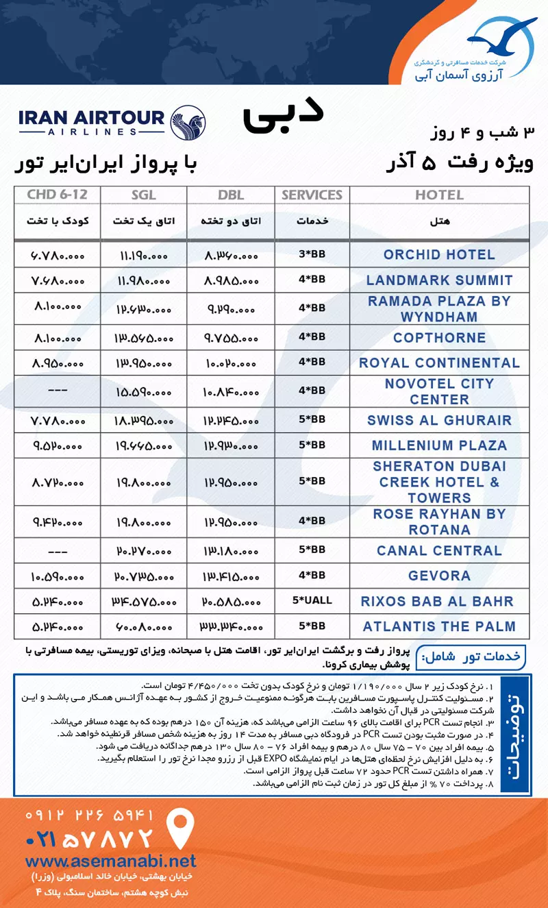 تور دبی | 4 روز ویژه رفت 5 آذر | پرواز ایران ایر تور