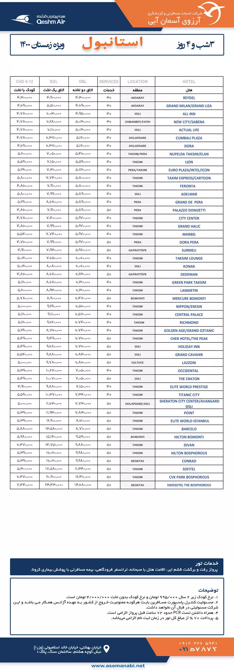 تور استانبول | ویژه زمستان 1400 | پرواز قشم ایر