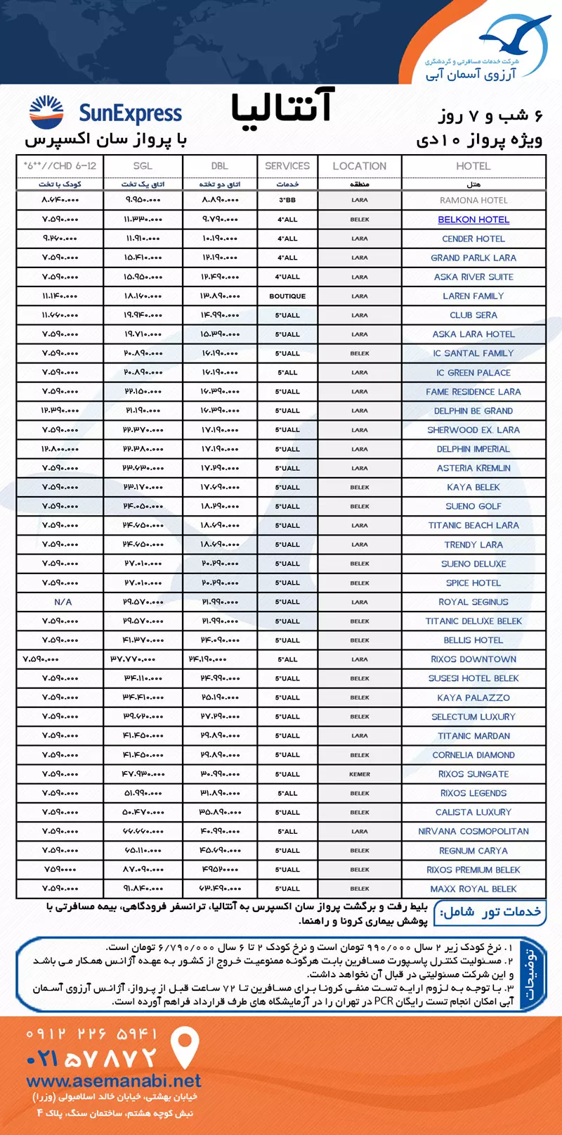 تور آنتالیا | ویژه 10دی| پرواز سان اکسپرس